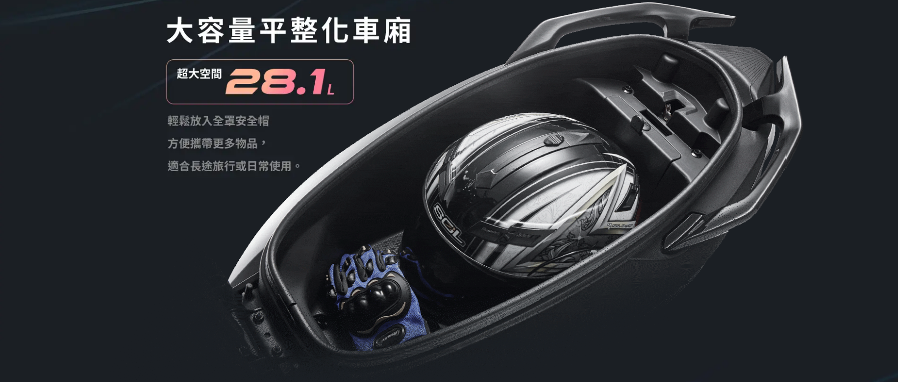 前置物箱空間:可放置 700 cc 飲料杯