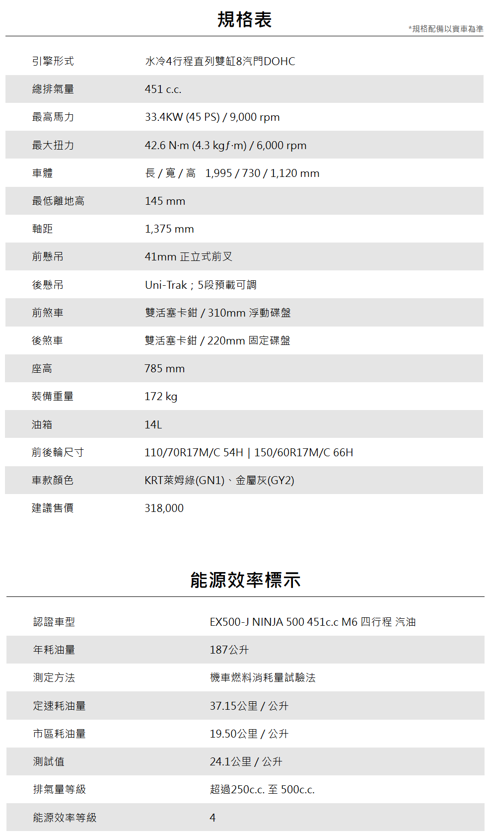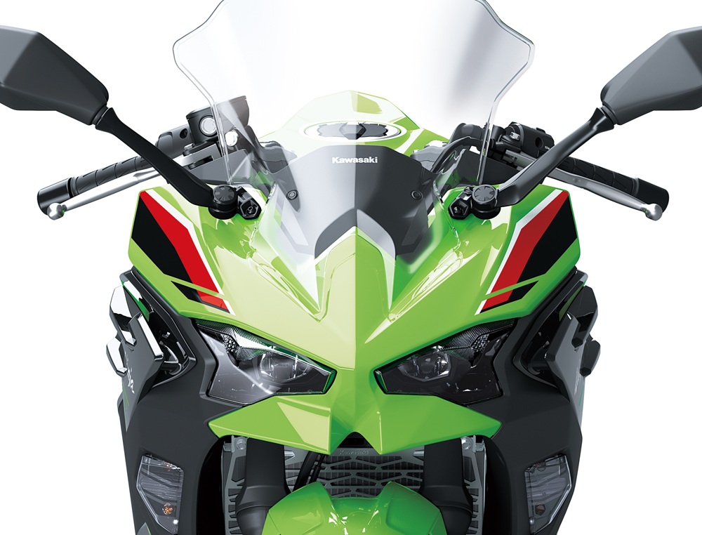 ![]() 採用緊湊的混合投影反射式LED頭燈,除了提供充足的照明之外,新設計的風鏡與多層次大面積的整流罩,讓Ninja500營造出大車的侵略感。 |